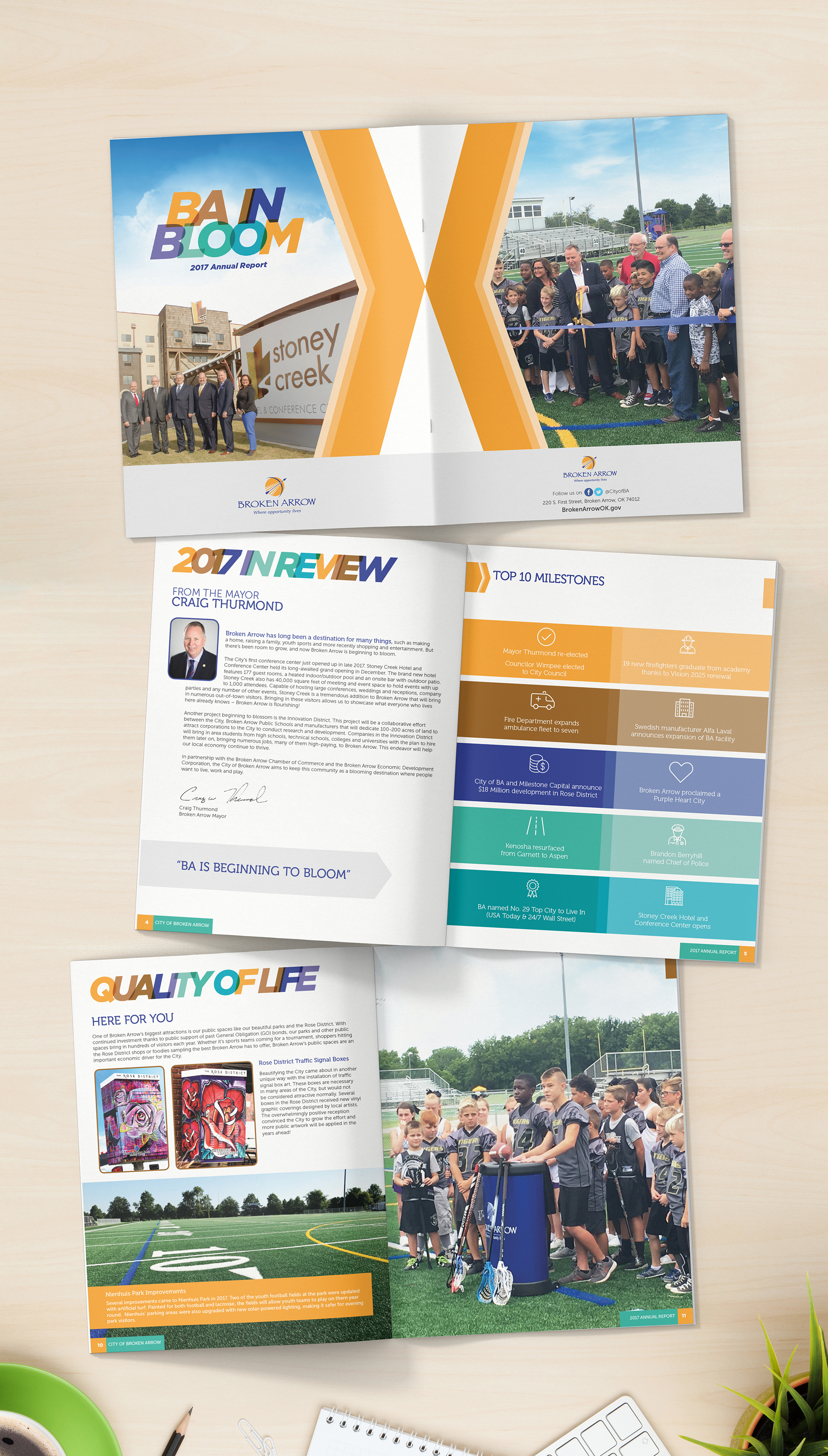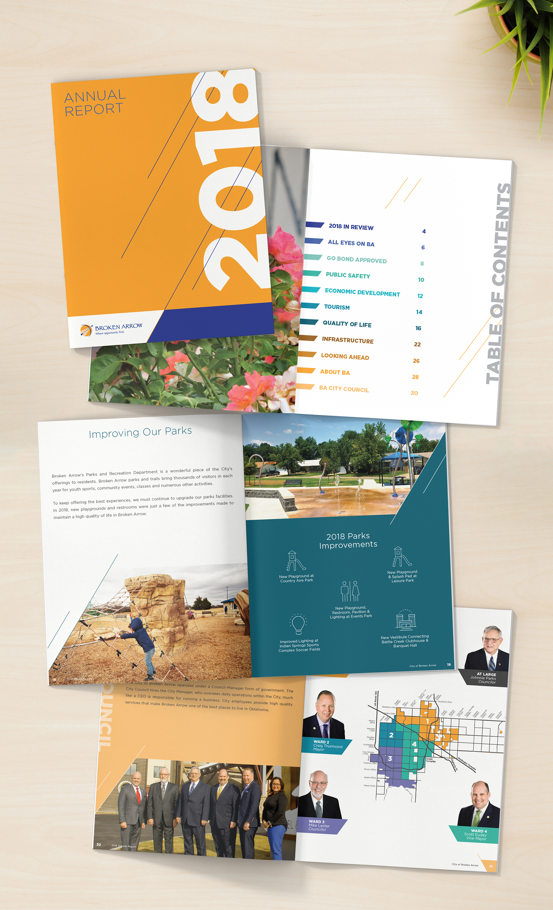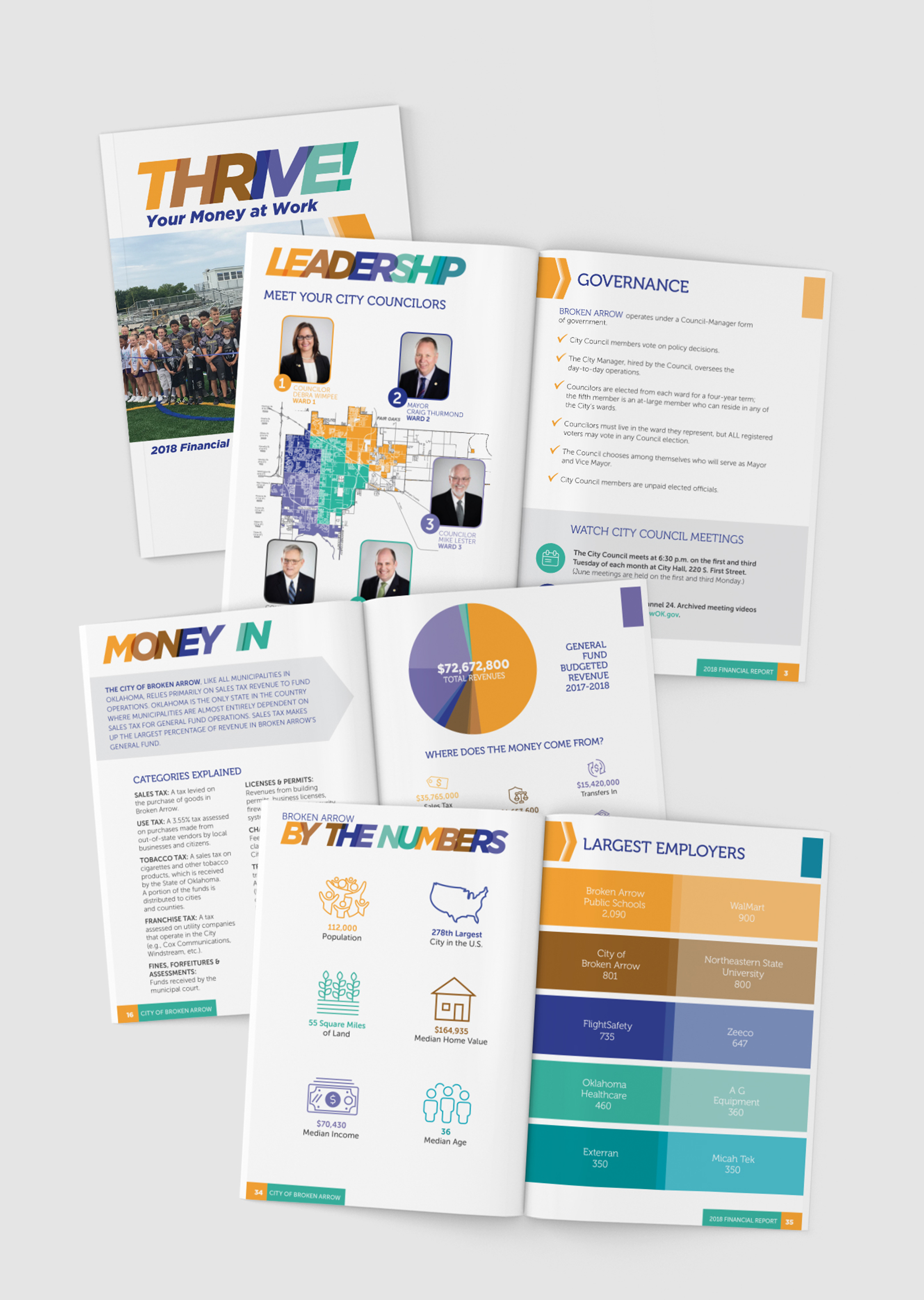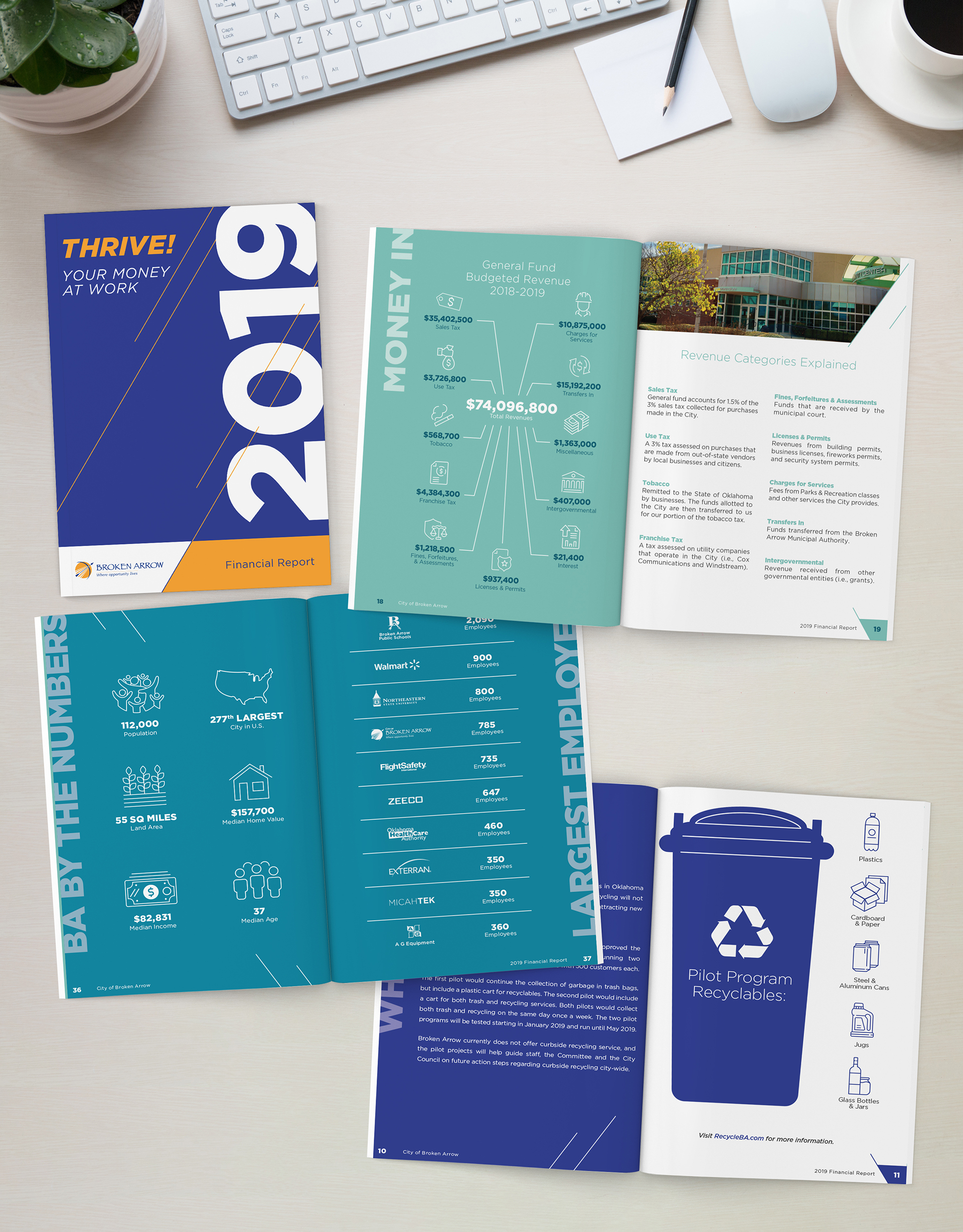 We worked with the City of Broken Arrow to create multiple annual reports and financial newsletters to disclose their operating and financial activities to their constituents. Creating a unique look and feel each year, while remaining in the overall City of Broken Arrow’s brand was key to the success of the projects.
