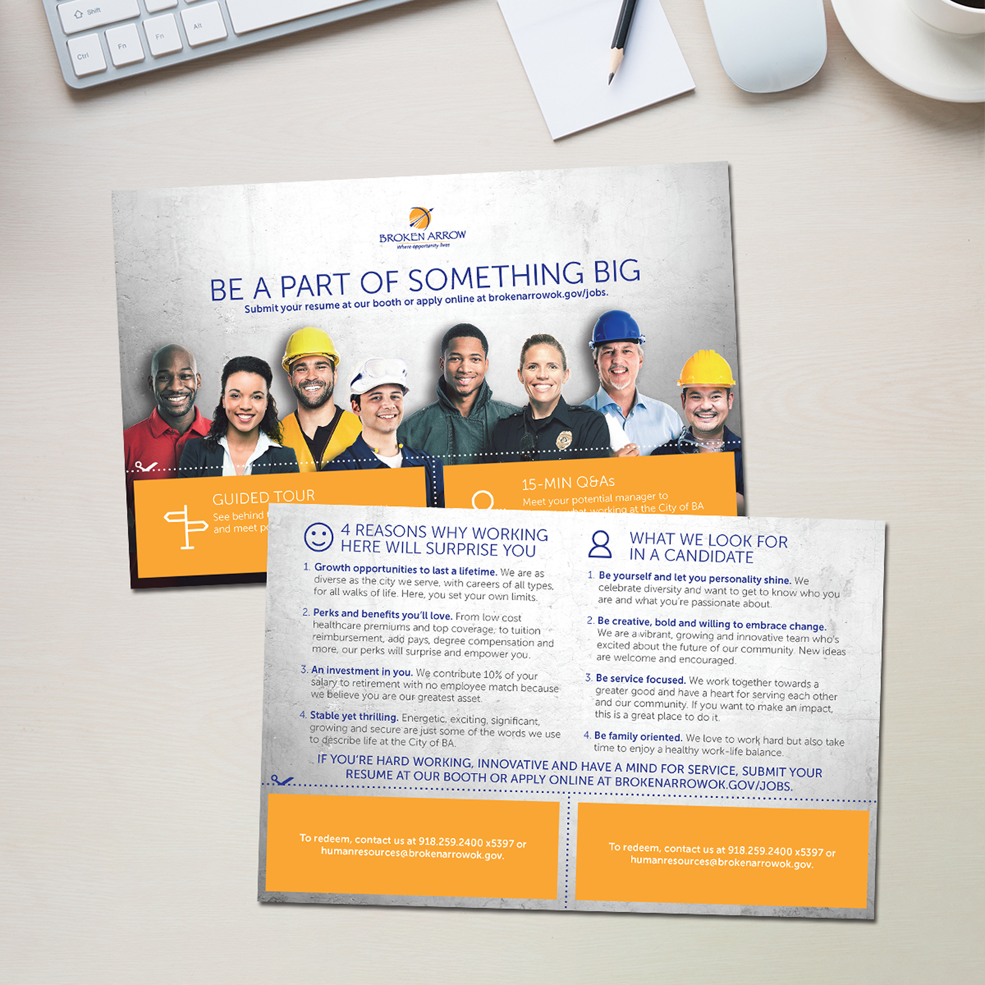 We also worked with the City of Broken Arrow’s HR department to design and develop a recruitment handout to elevate the public’s perception of municipality career opportunities and attract top candidates.