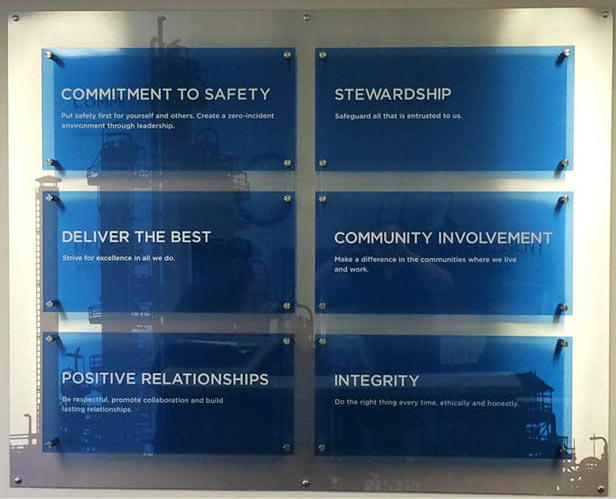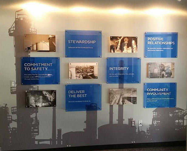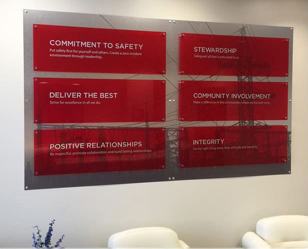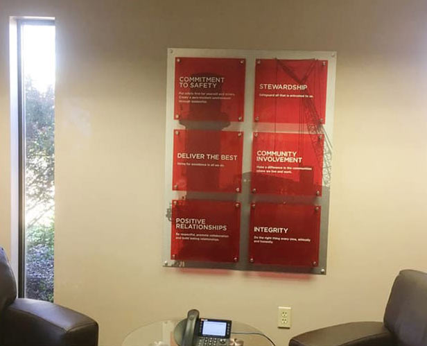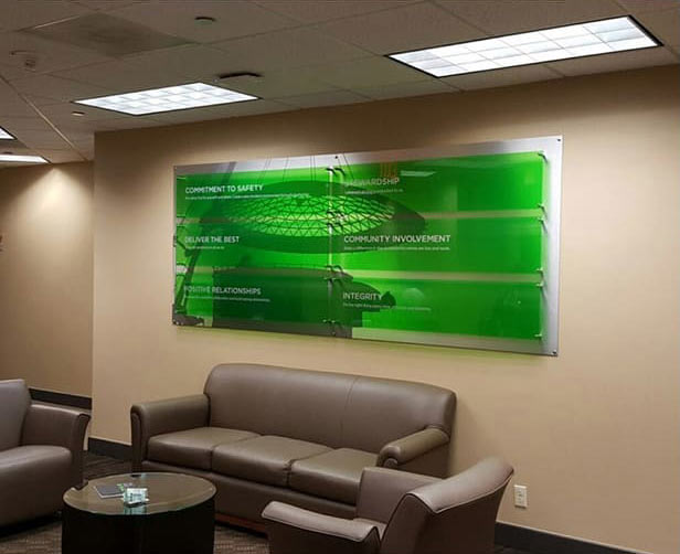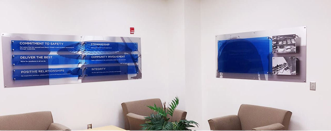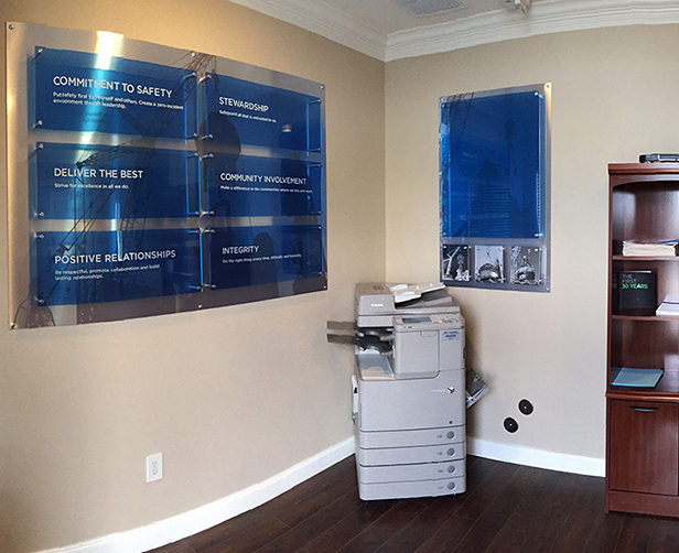 Sizes ranged from to 2’ x 4’ up to 10’ x 46’ and included installations of metal and plexi to vinyl.