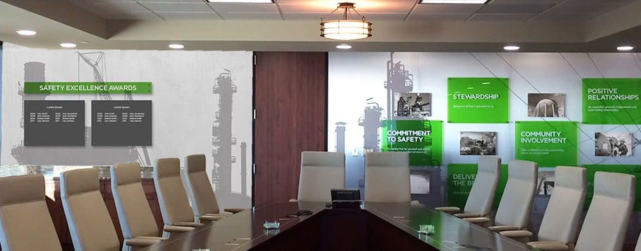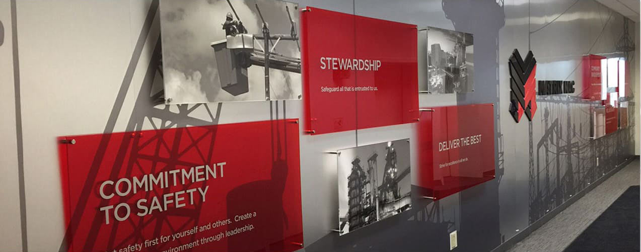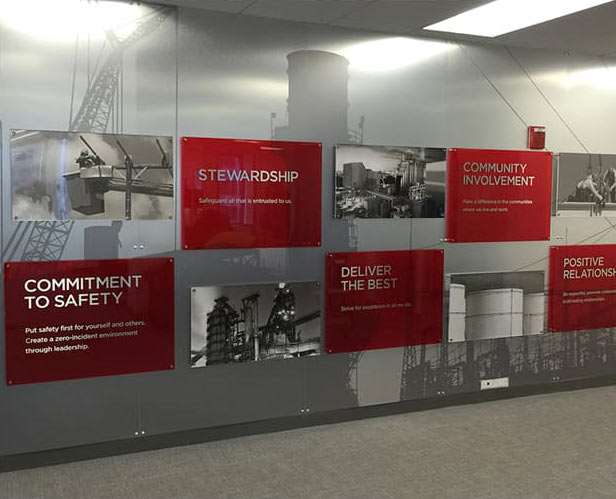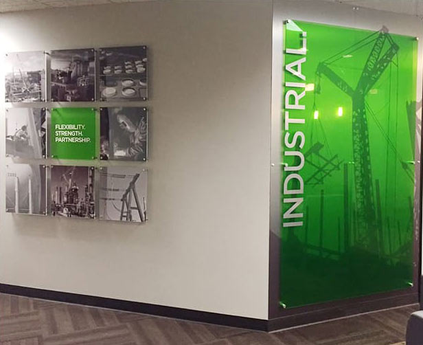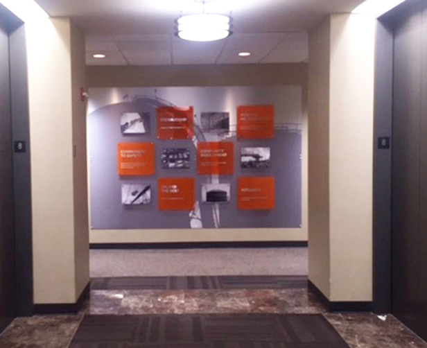 After acquiring new subsidiaries, the industrial company wanted to create a consistent, unified, and clear brand culture for all of their 5,000+ employees. To accomplish this, we created scalable environmental graphics and branded interiors that communicated who they are and what they believe. These were installed in office locations around the globe.