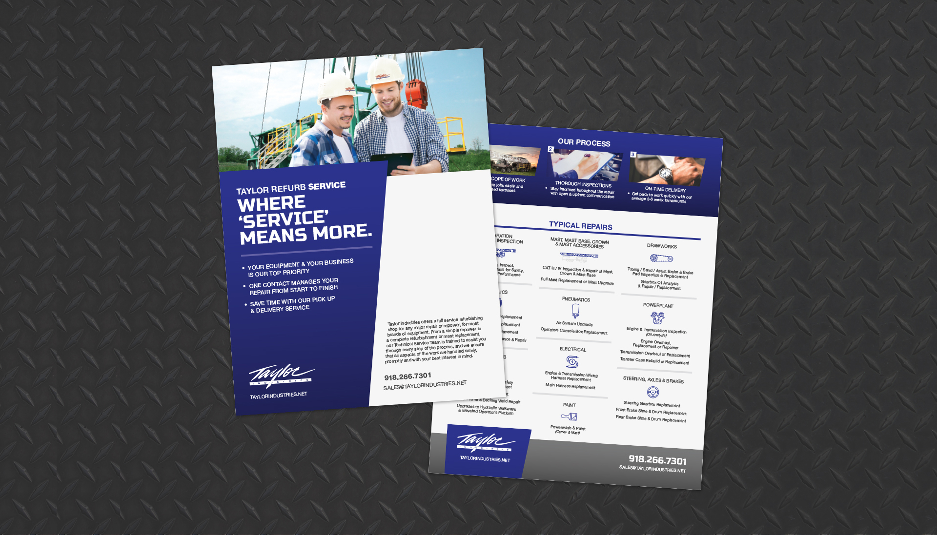 We worked with Taylor Industries to create a one-sheet template for their many different services and products. Creating an updated, consistent and scalable look was key to the success of the project.