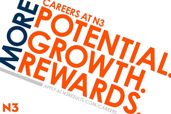 We created an employer brand identity that pairs seamlessly with N3’s corporate brand and celebrates the company’s most valuable resource, its people. To begin, we worked with Brandemix to finalize an employer #RallyPoint that communicates the sales firm’s internal culture and career opportunities.
