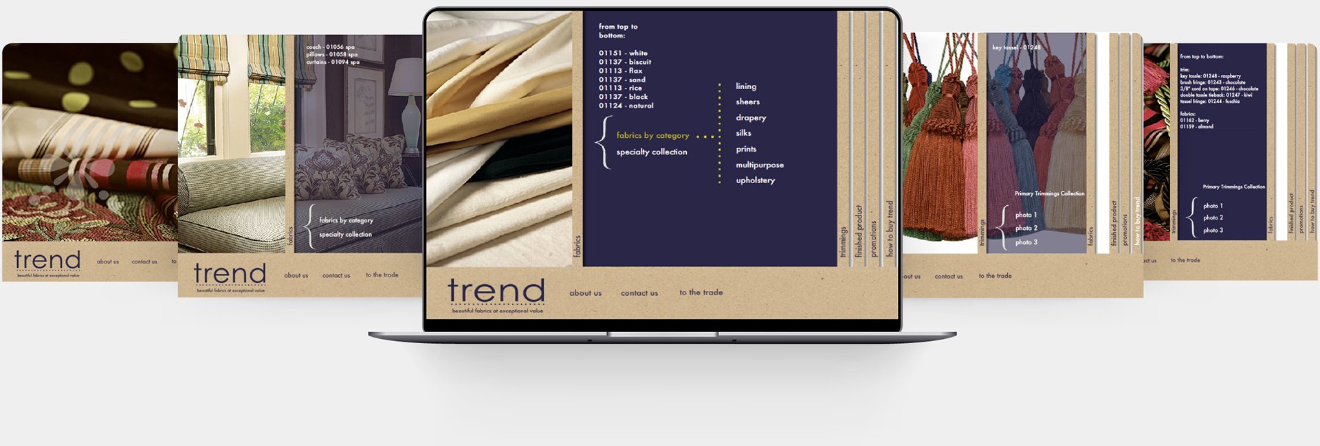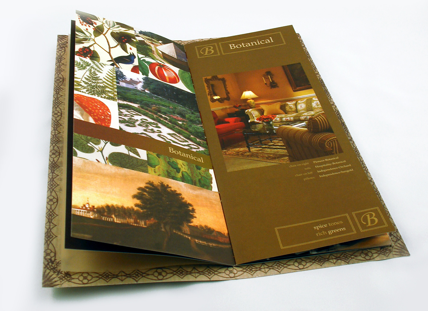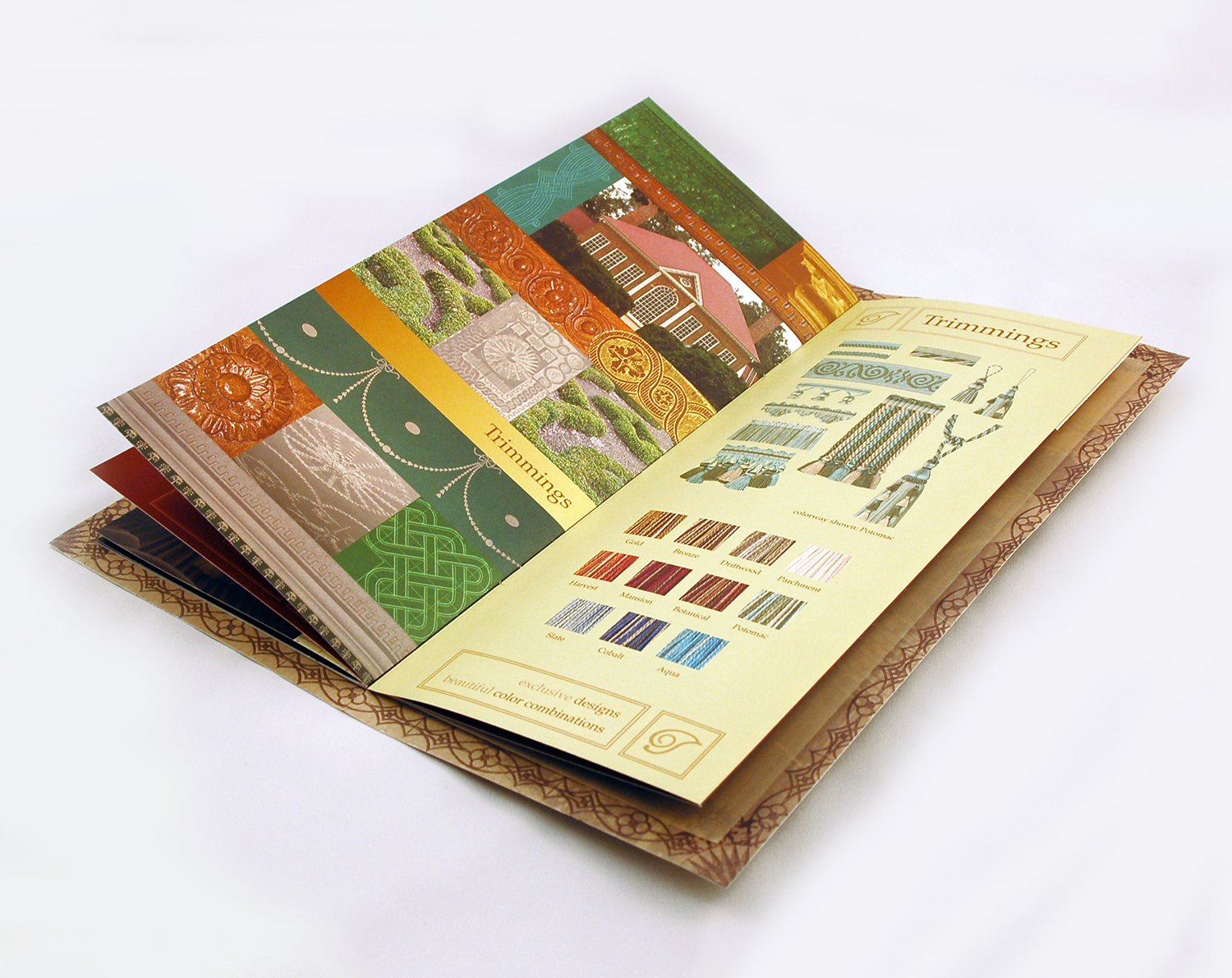 Creating consistent, branded packaging for four fabric colorway books and a trim book further cemented the campaign’s look and feel.